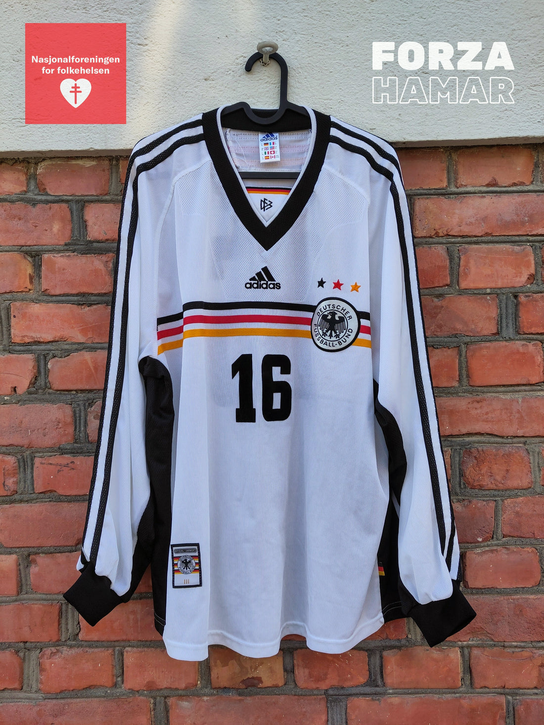 Buy this shirt at auksjonen.no from 1.-11. december 2024.Used by Dietmar Hamann and swapped with Norway player Vegard Heggem after Norway - Germany 0-1 (14.11.1999).