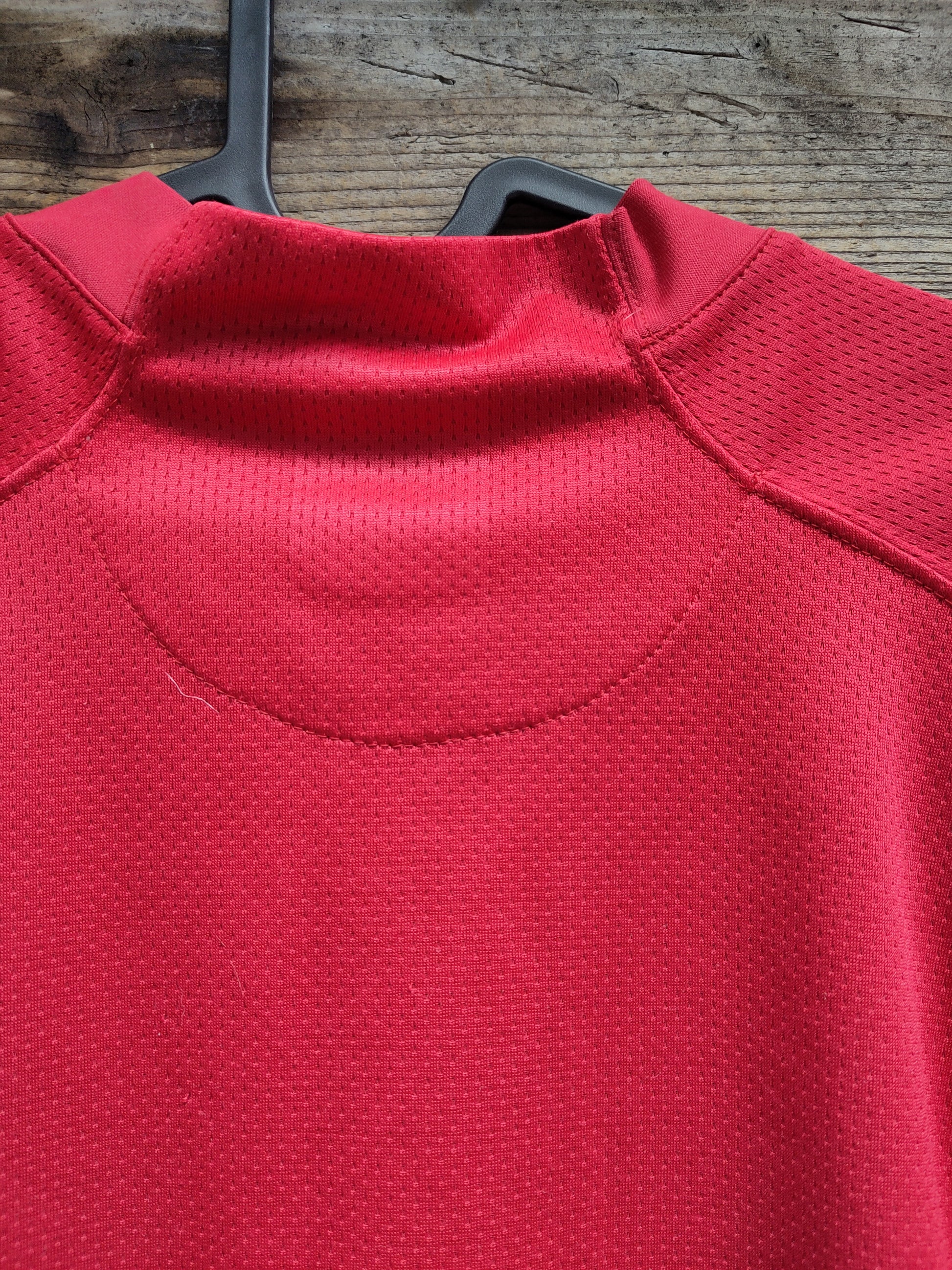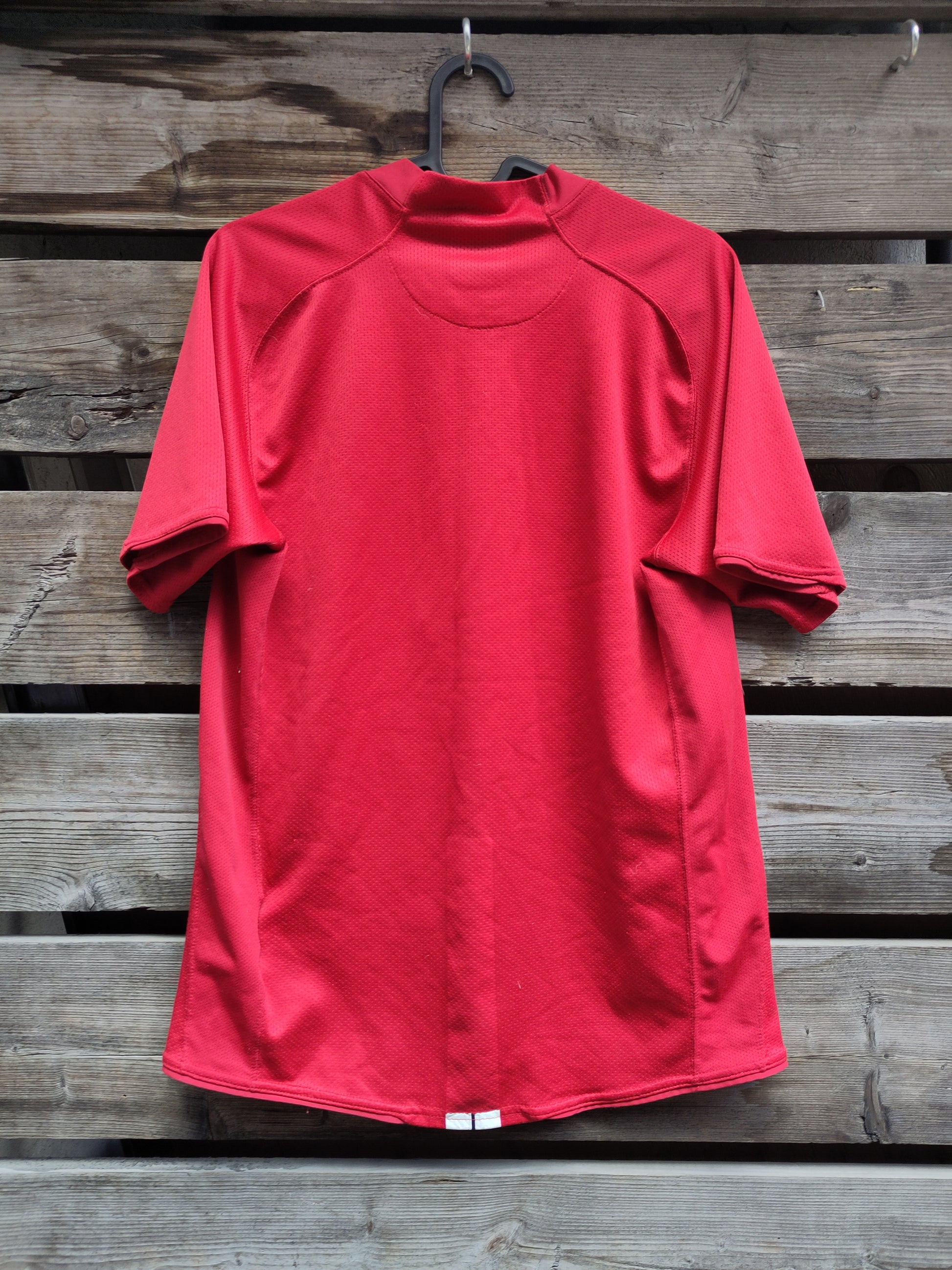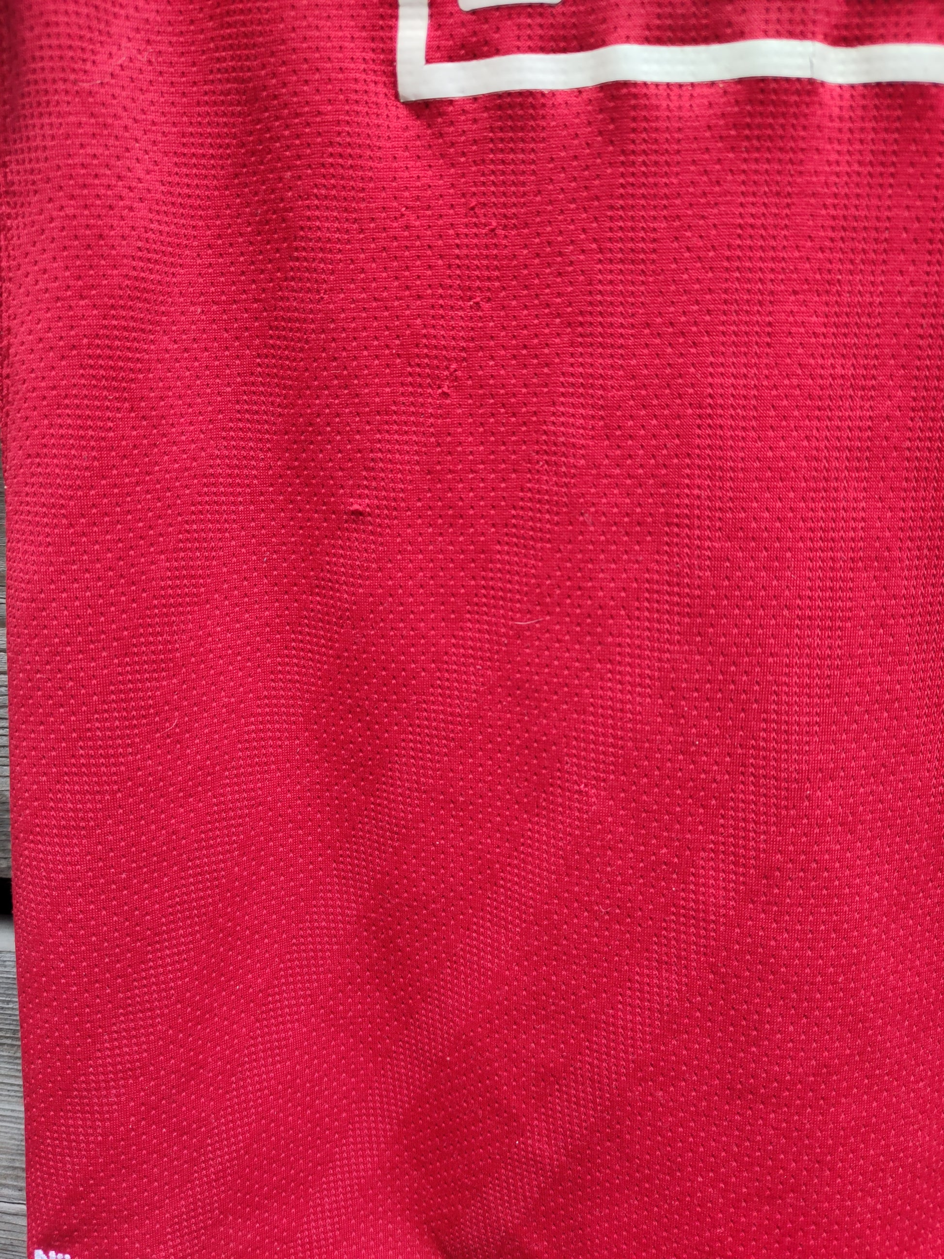 Litt slitasje (se bilder). Trykk bak drakten, som skulle ha vært i bakken og nederst på ryggen, har falt av. Et normalt problem med denne drakten.