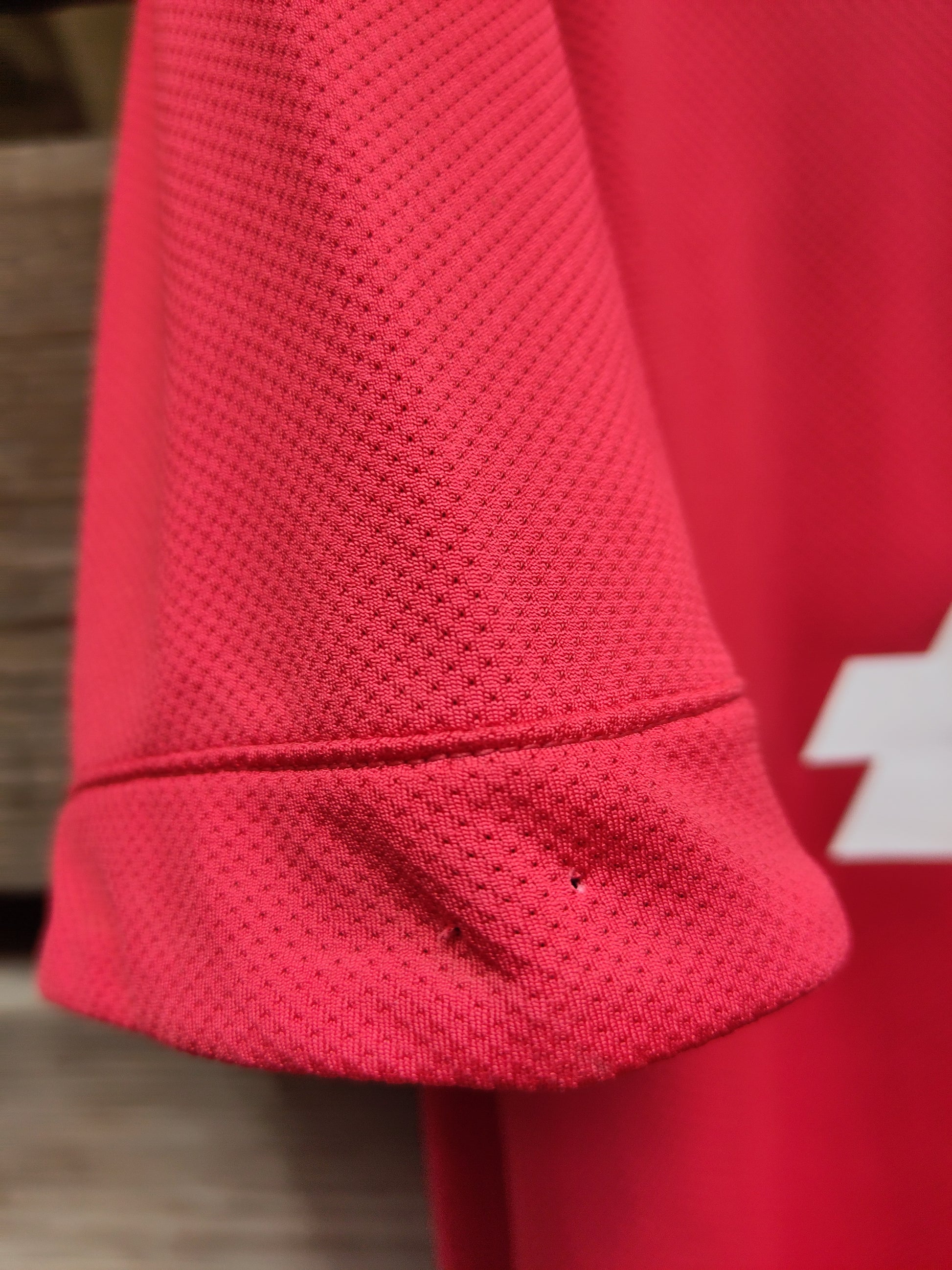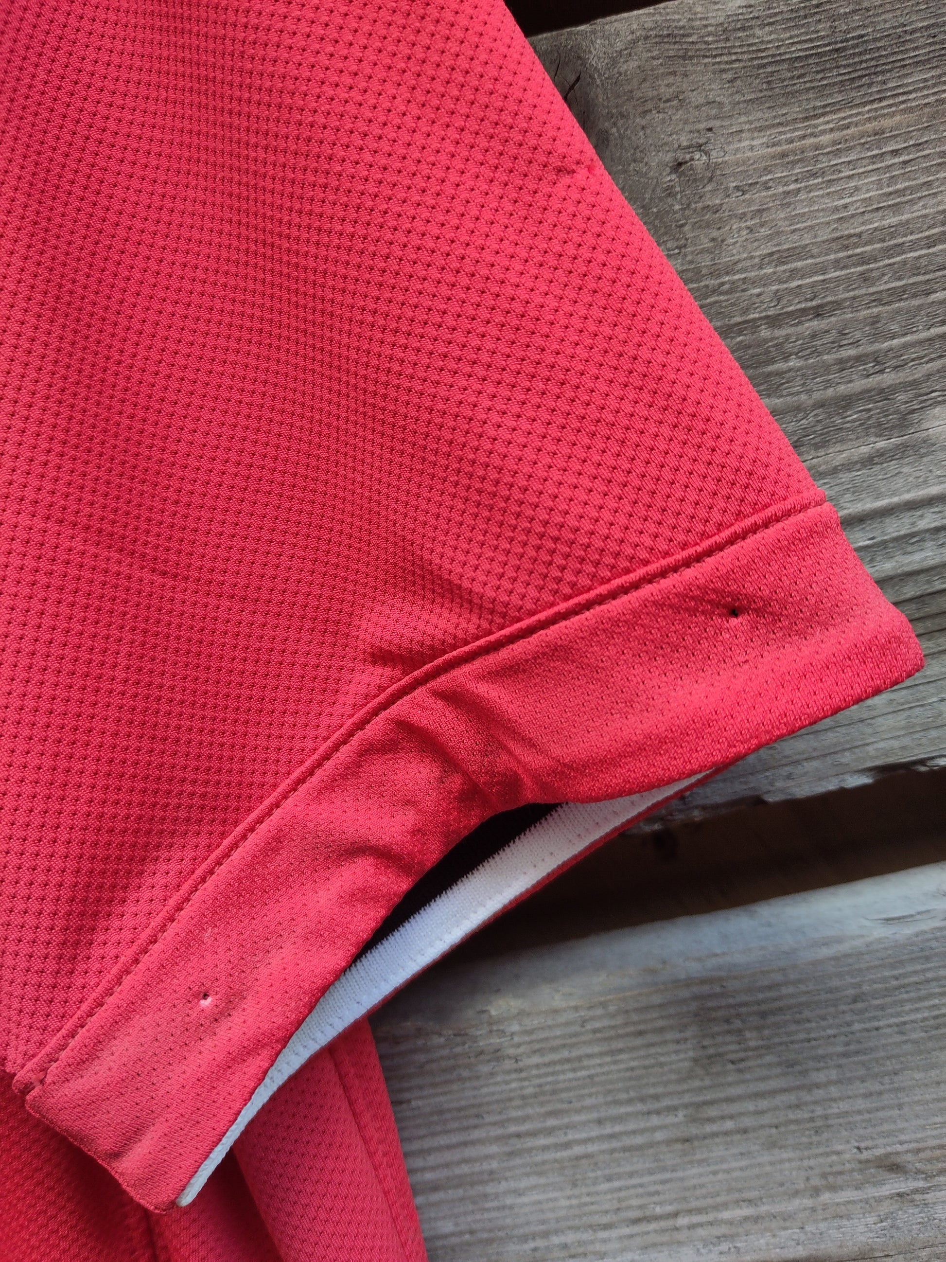 Hull etter tegnestifter ytterst på ermene (se bilder). For tilsvarende drakt uten hull på ermene: https://forzasecondhand.no/products/manchester-united-drakt-2011-12-hjemme?_pos=1&_sid=8a95e945d&_ss=r