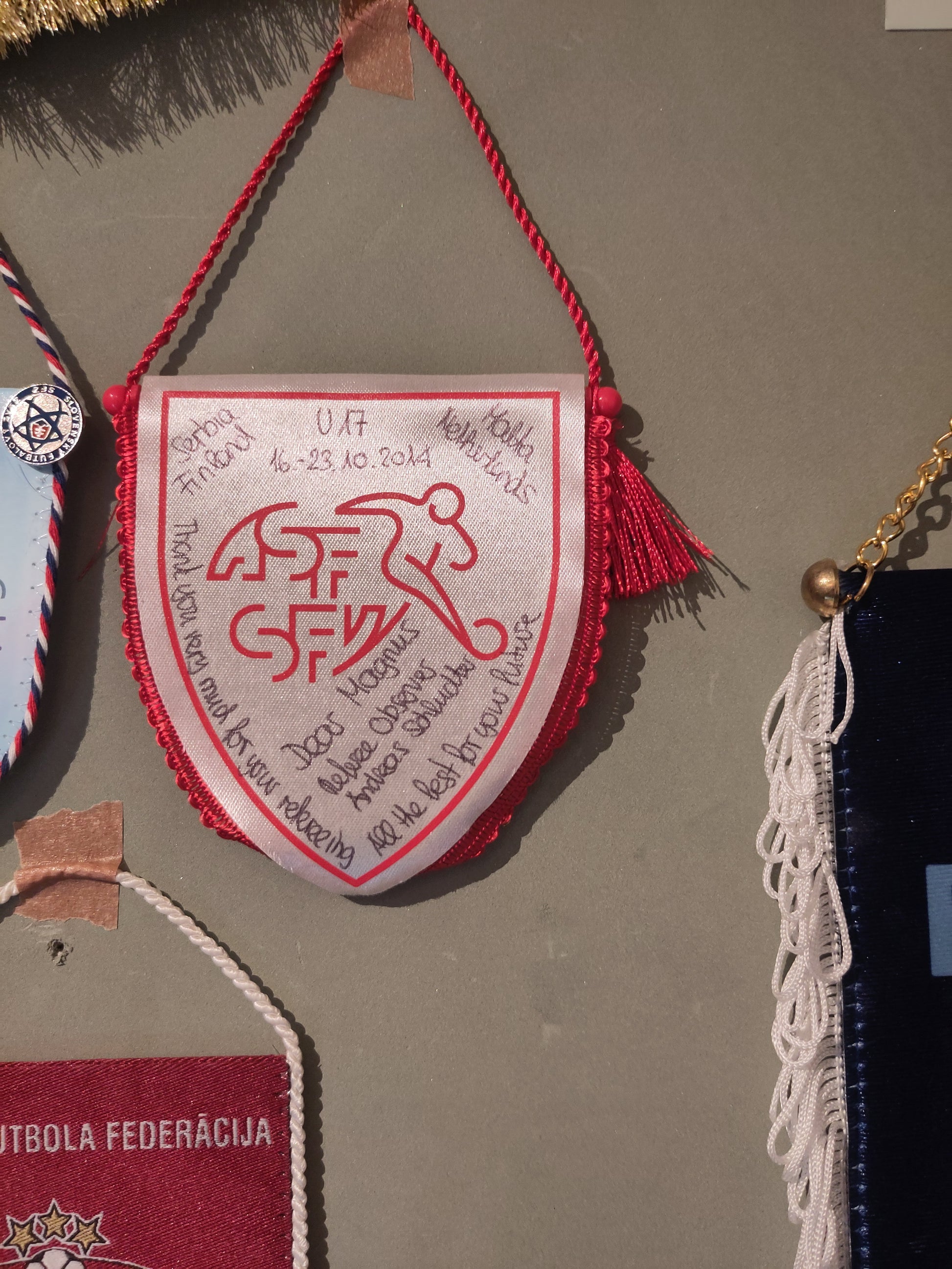 Vimplene kommer fra en norsk assistendommer som har fått vimplene ifm kamper han har dømt. Hovedsakelig landskamper og kamper i Europa League og Champions League. Størrelse på vimplene i parentes. Liten: Under 20 cm Medium: Under 30 cm Stor: Over 30 cm